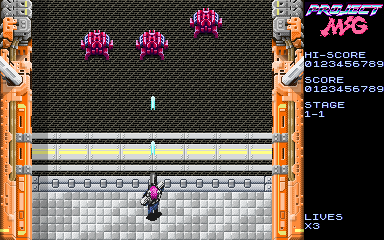 The emphasis was now on enemy formations and less about filling the screen with bullets. It was also vital to ensure that the odds were clearly stacked against the player. While a 2-player option was seriously considered, single player was favoured to capture that more desperate hardcore climate. And also to give the player a strong sense of accomplishment once a stage is cleared.